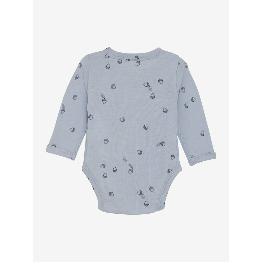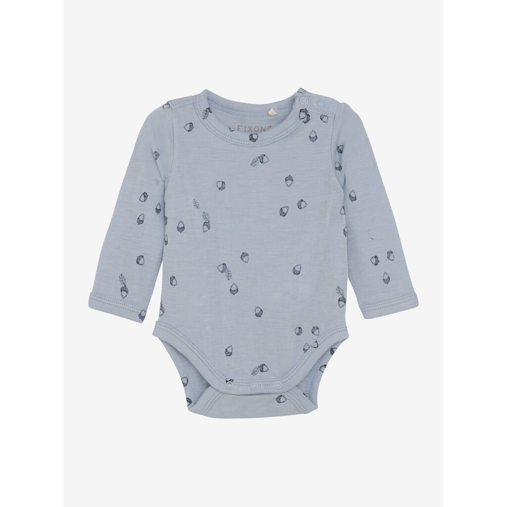 Baby Body aus Merinowolle und Seide mit langen Ärmeln Fixoni - blau Blue Fog