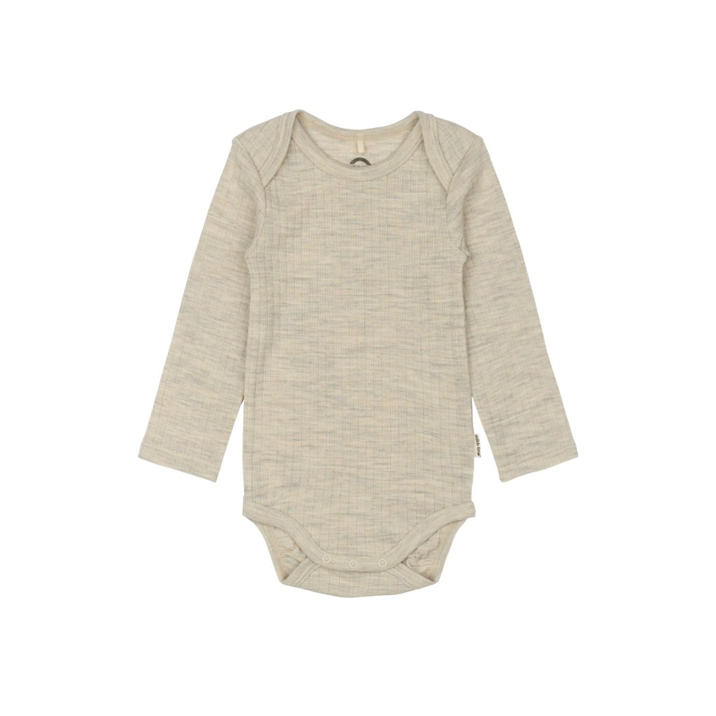 Baby Body Langarm aus Merinowolle braun Melange Offwhite Mikk-Line