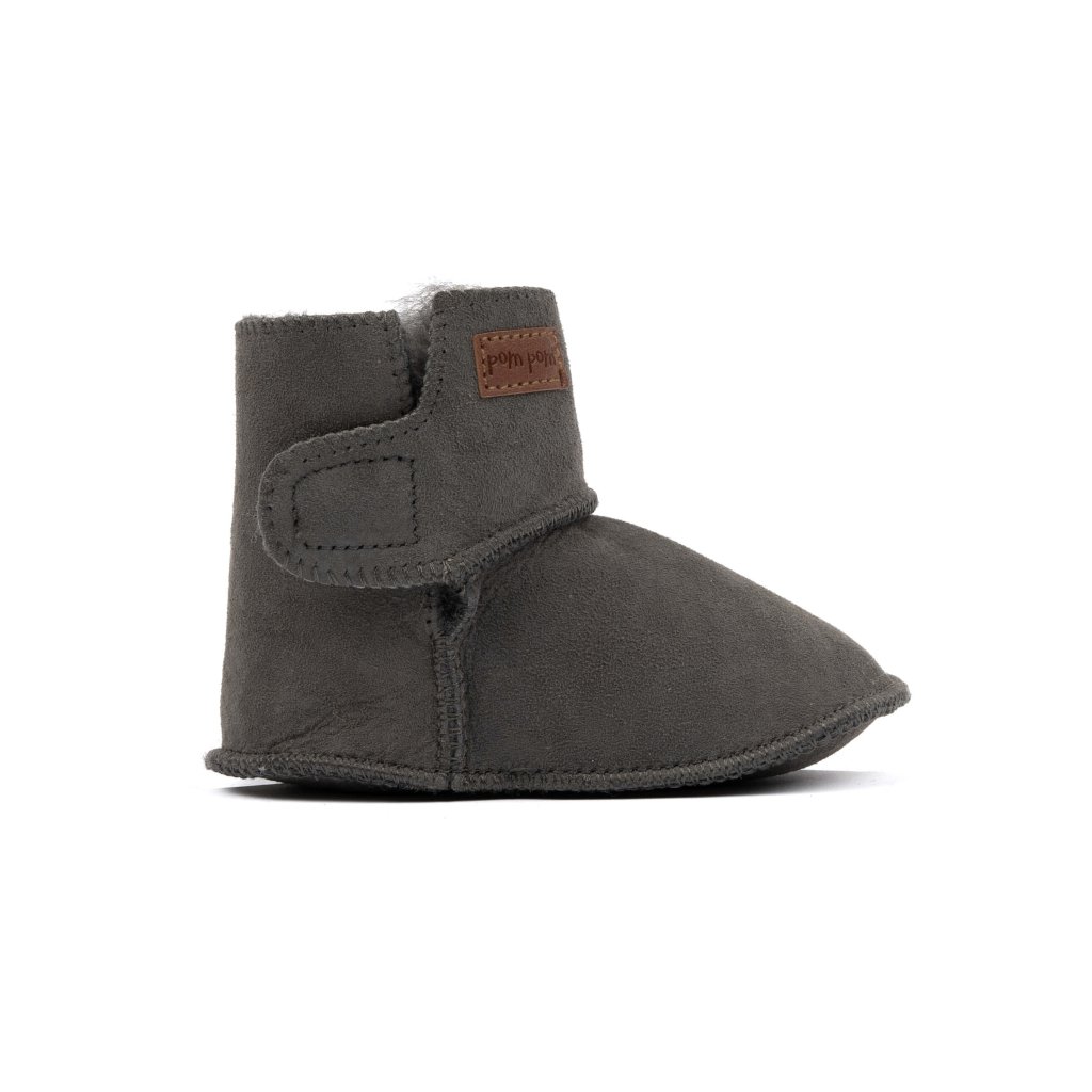 Baby Booty™ Sheepskin Leder Krabbelschuhe grau Gray POM POM
