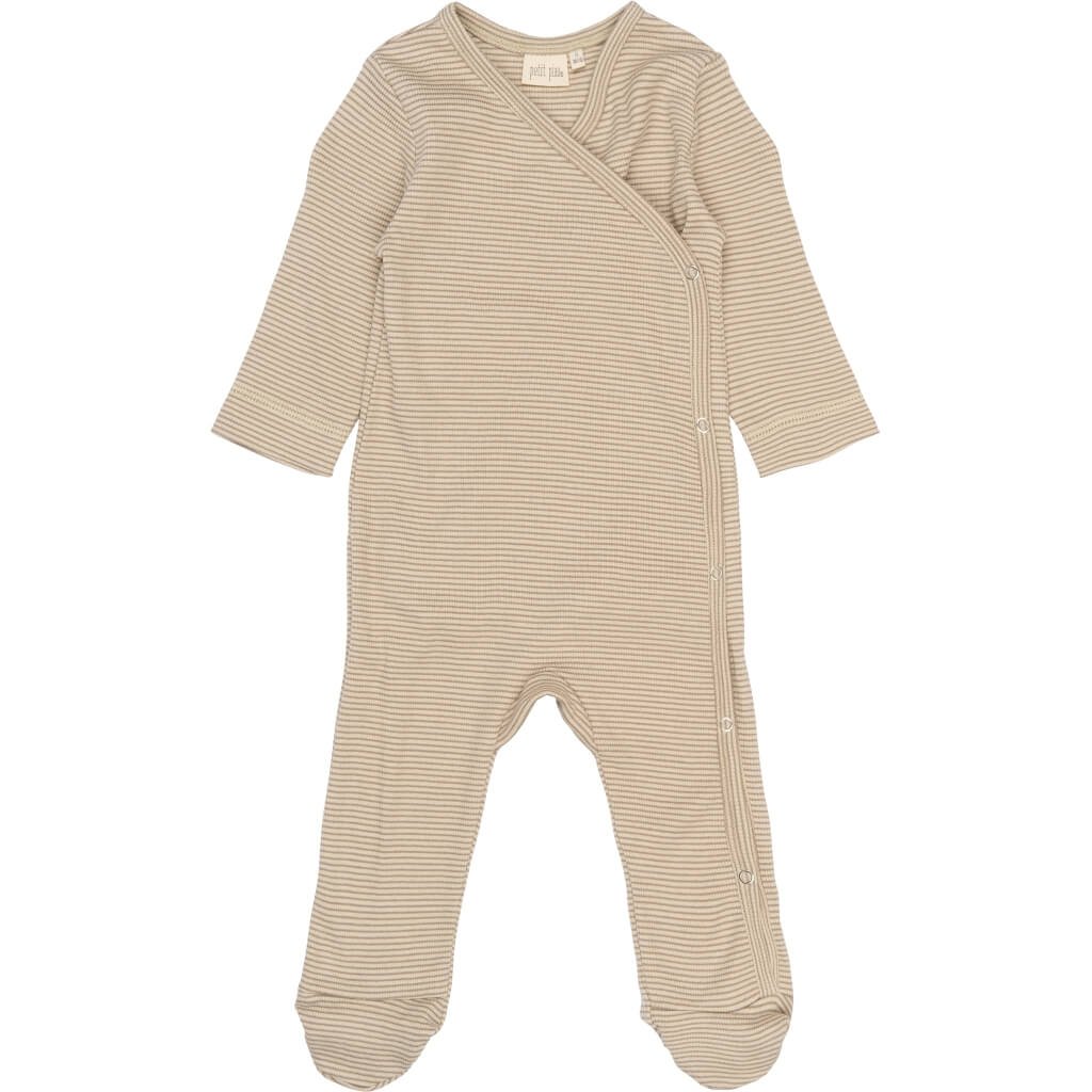 Baby-Overall für den ganzen Körper mit Füßlingen, langem Arm aus Baumwolle und Modal PETIT PIAO - Farbe braun