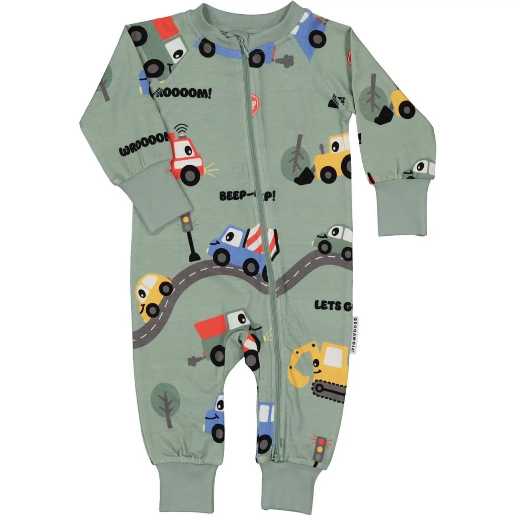 Bambus Kinder Schlafanzug (Overall) Geggamoja - Green tractor