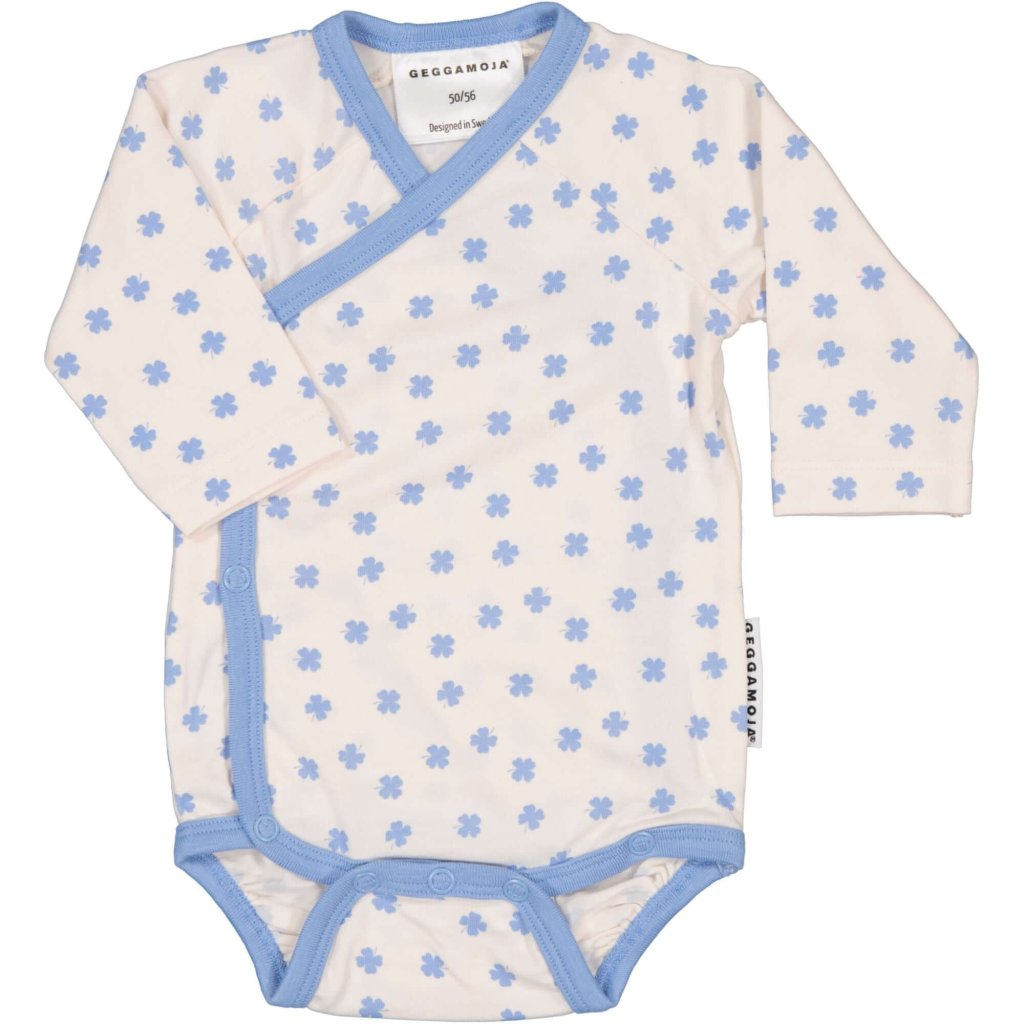 Bambus-Wickelbody für Babys mit langem Arm Geggamoja - Blue mini clover