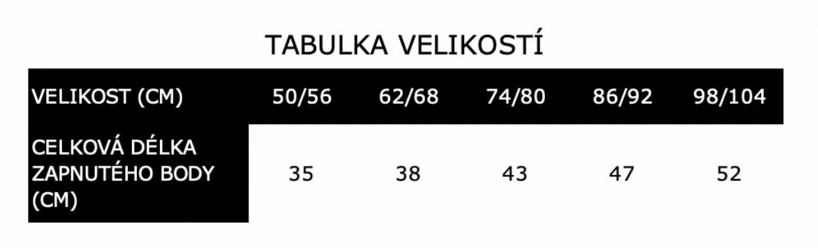 Dank des einzigartigen Schnitts des Körpers kann er mindestens zwei Größen halten. Praktische Druckknöpfe im Schritt, dank derer das Kind nie am Rücken ziehen wird. Bitte lösen Sie die Nieten niemals durch Ziehen am Stoff. Bei unvorsichtiger Handhabung kann der Stoff um den Bolzen herum beschädigt werden.