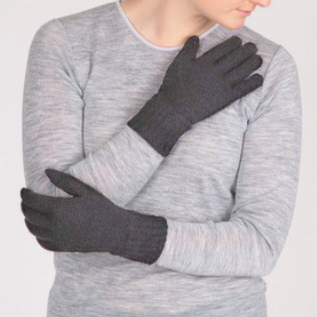 Damen-Fingerhandschuhe aus Merinowolle dunkelgrau ELVIRA SAFA
