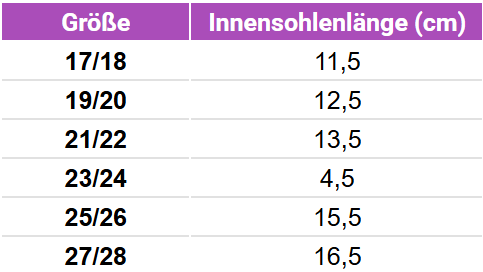 Größentabelle En Fant Kinderhausschuhe aus Wolle