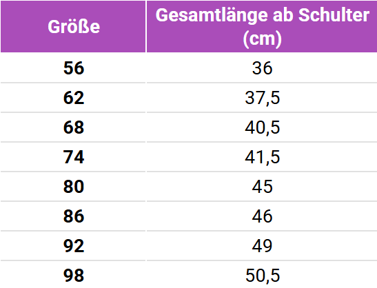 Größentabelle Smallstuff Ärmelloser Body