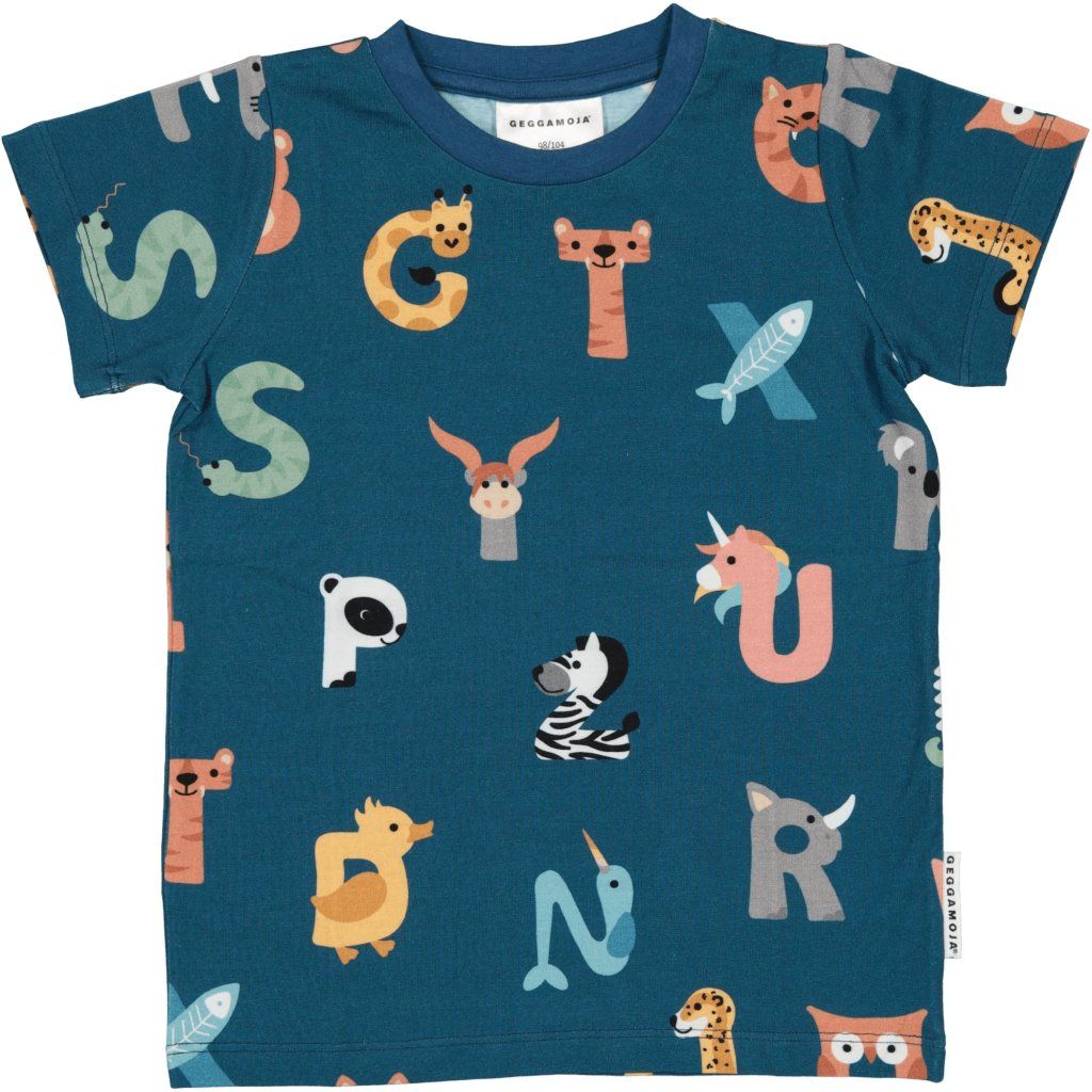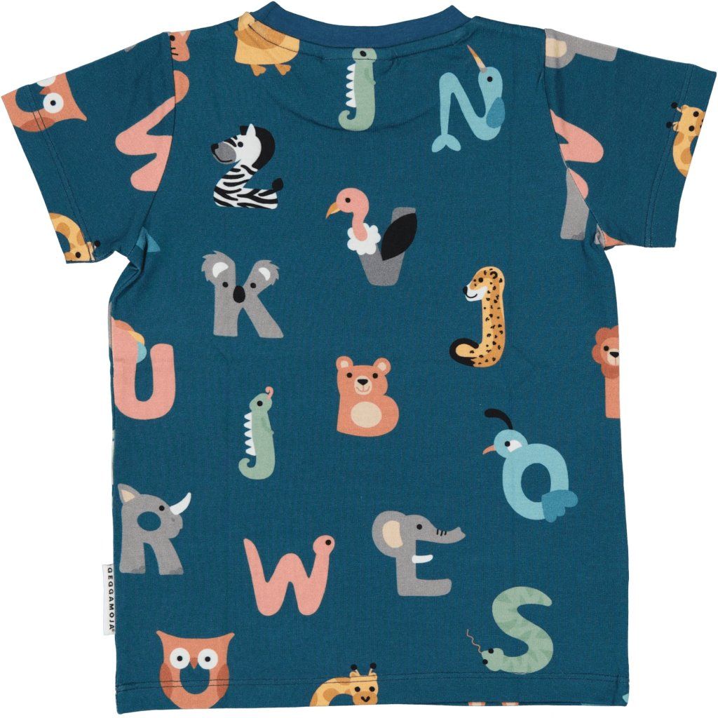 Kinder Bambus T-Shirt kurzarm Geggamoja - blau Tierbuchstaben