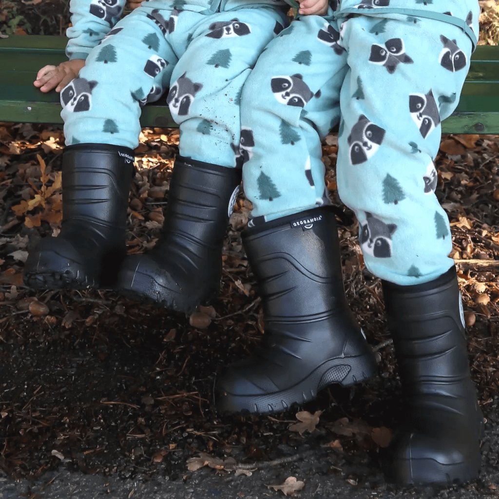 Kinder gefütterte Gummistiefel mit warmem Wollfutter schwarz Geggamoja
