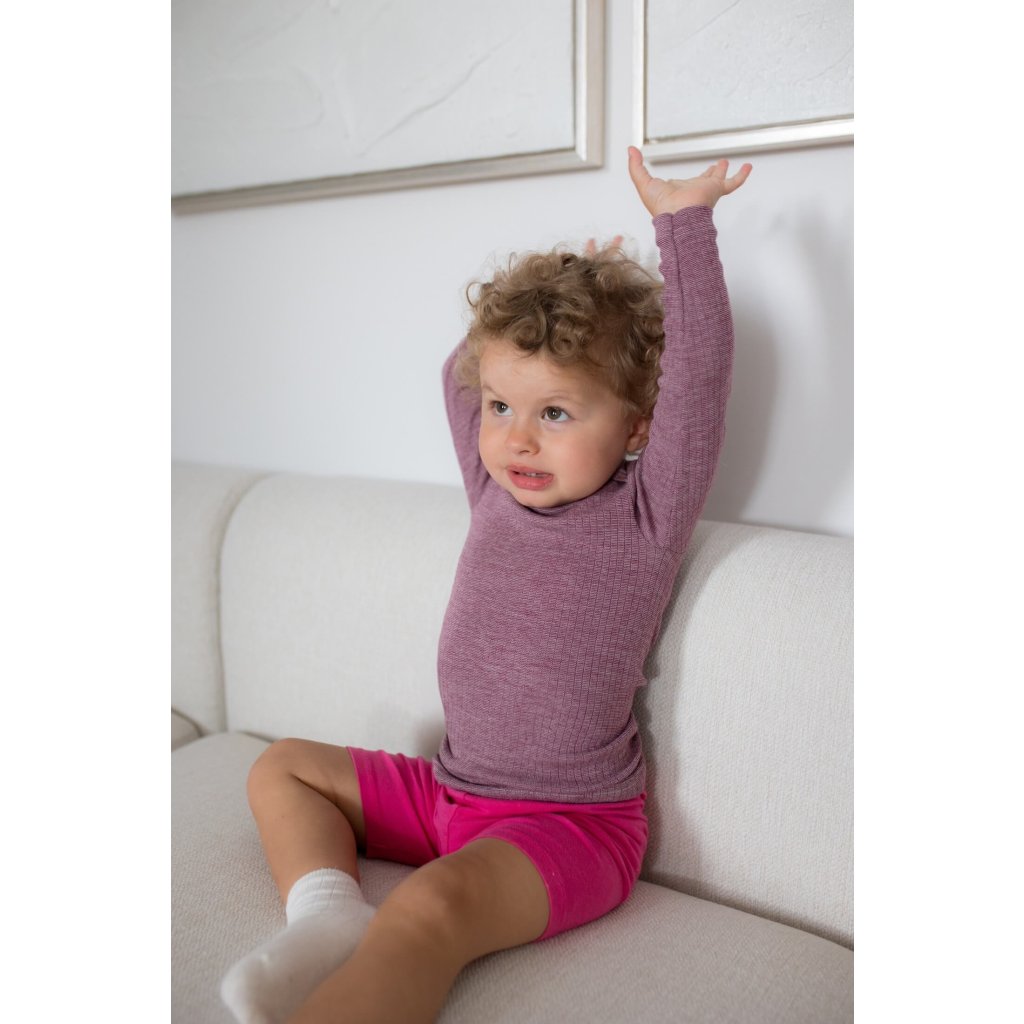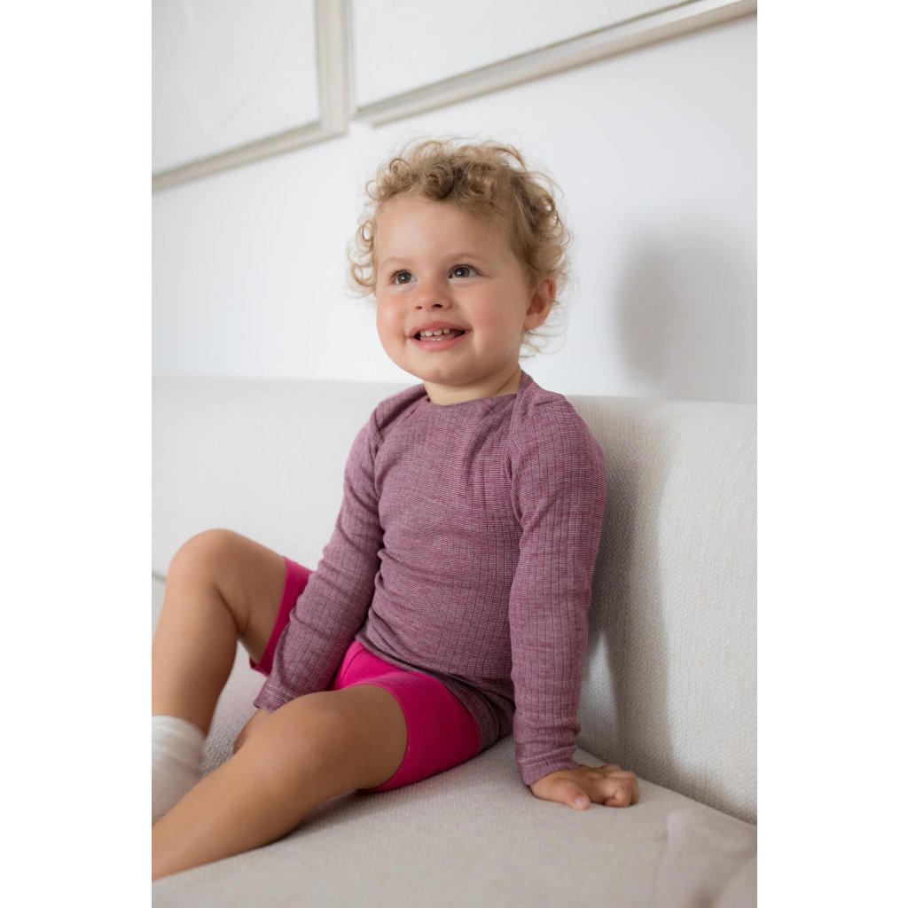 Kinder Langarmshirt aus Merinowolle, Baumwolle und Seide, bordeaux melange, Cosilana 91033