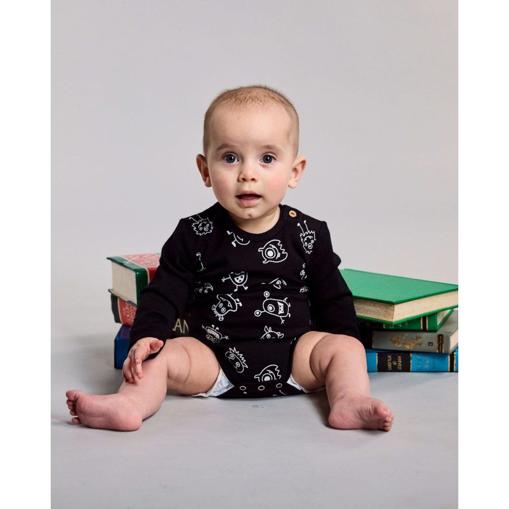 Kinder-Merino-Body aus 100 % Merinowolle, Langarm LFOH - Black Monsters