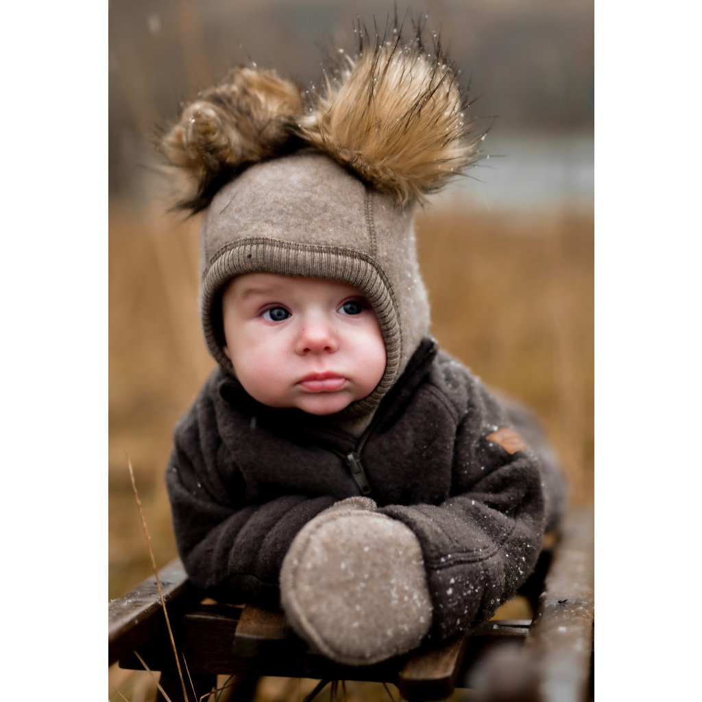 Kinder Merino Kapuze mit Bommeln Melange Denver Mikk Line