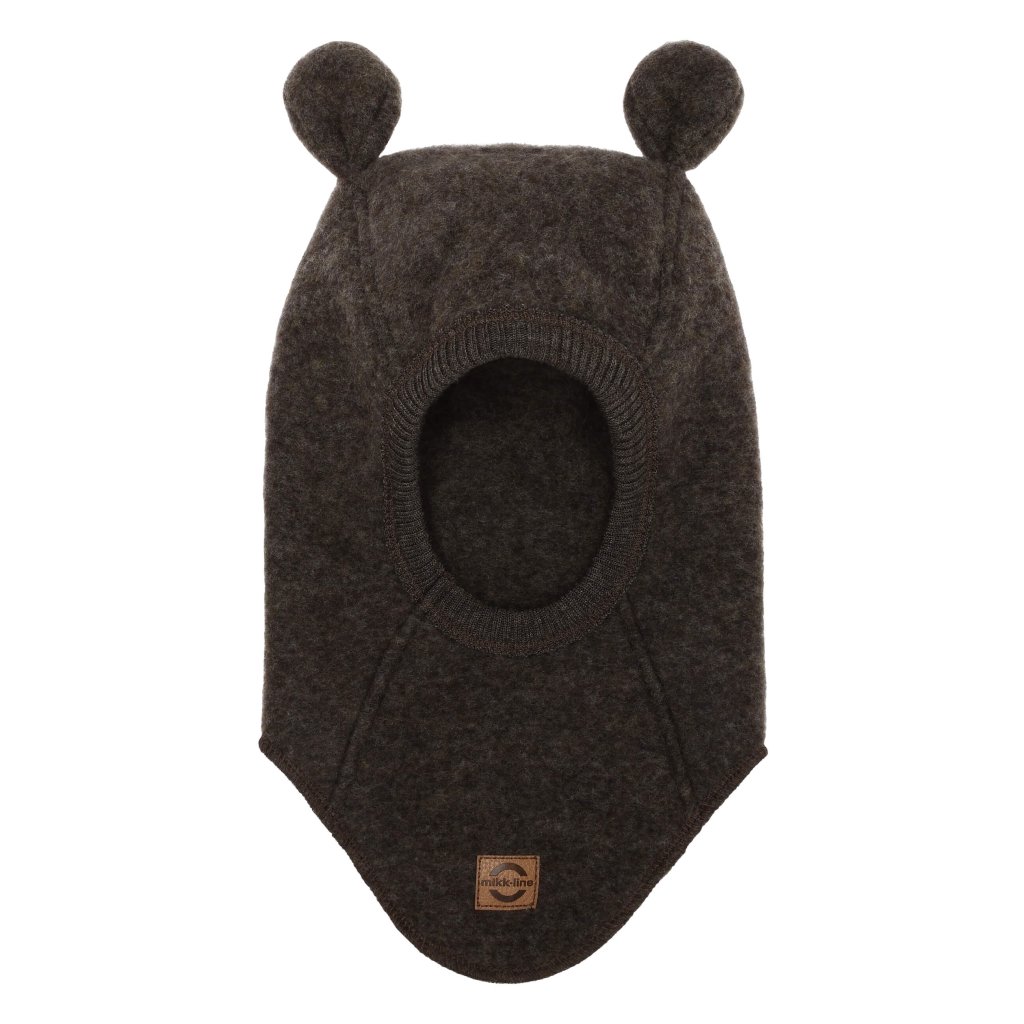 Kinder Merinohaube mit Ohren Braun Dunkelbraun Melange Mikk Line