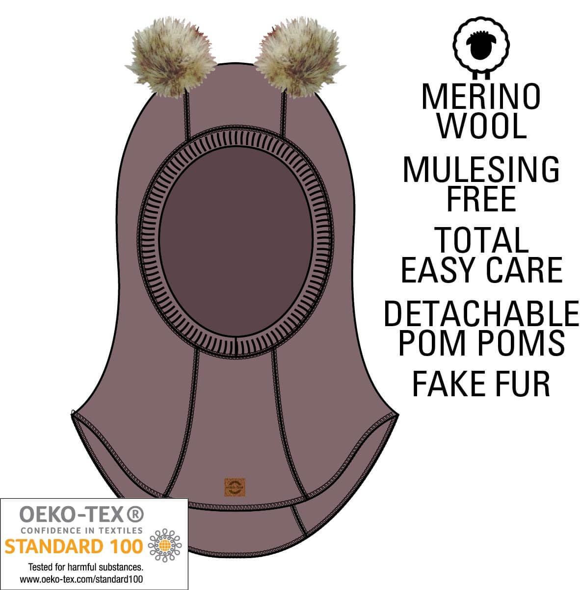 Merinowolle ist für ihre außergewöhnlichen Eigenschaften bekannt: Sie hält bei Kälte warm und bei Hitze angenehm kühl. Seine antibakterielle Eigenschaft verhindert wiederum die Bildung von unangenehmen Gerüchen. Außerdem fühlt sich die Haube dank ihrer Weichheit angenehm an.