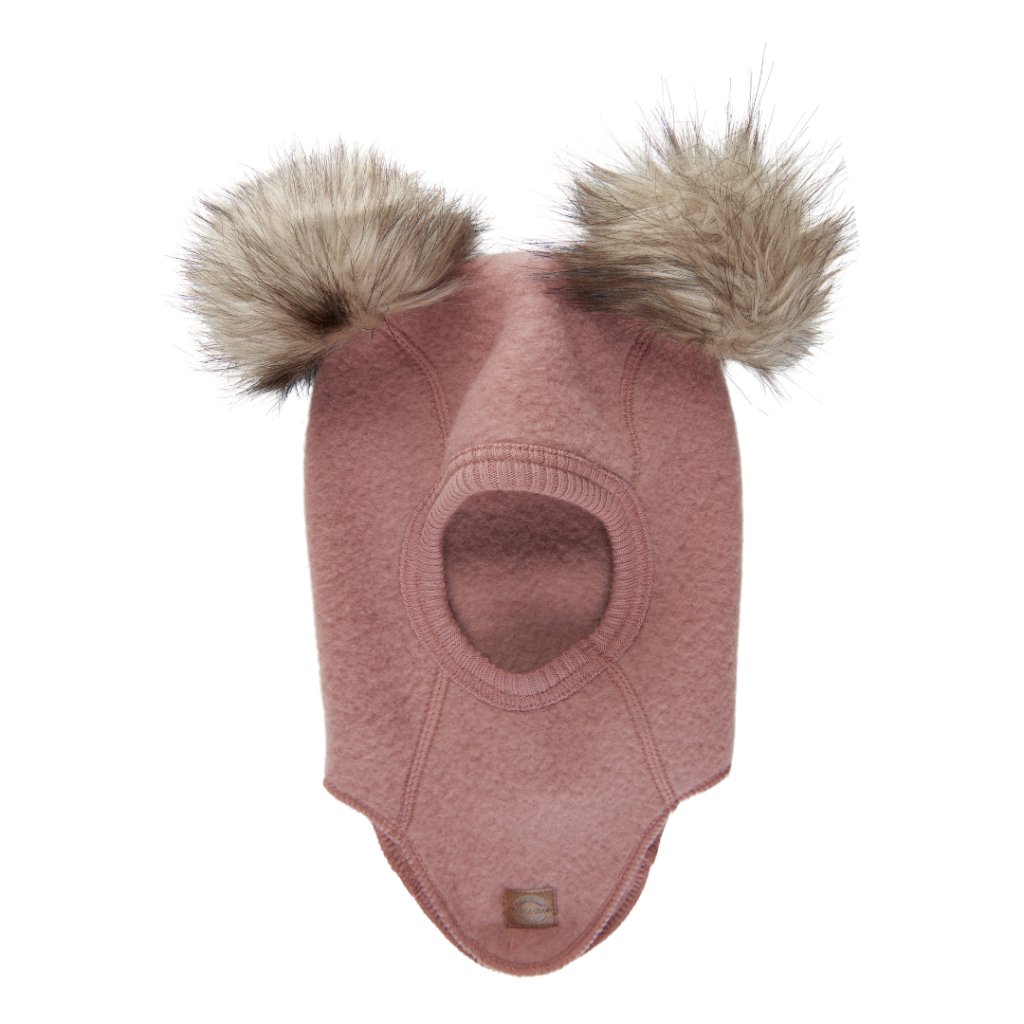Kinder Merinohaube mit Pompons rosa Burlwood Mikk Line
