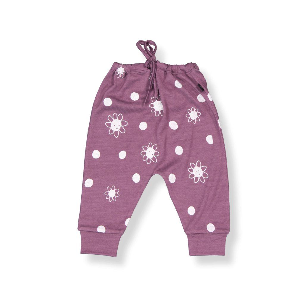 Geräumige und bequeme Hose für Ihre Kinder aus 100% Merinowolle der neuseeländischen Marke Little Flock of Horrors mit einem lockereren Schnitt im Bauchbereich, einem Kordelzugbund und Bündchen sind ideal für kleine Kinder, die etwas mehr Platz benötigen – sei es wegen Windeln oder eines größeren Bäuchleins.
