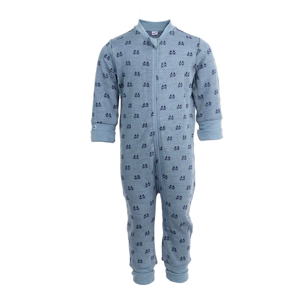 Kinder Overall/Schlafanzug aus 100% Merinowolle Jaquard SAFA - blau