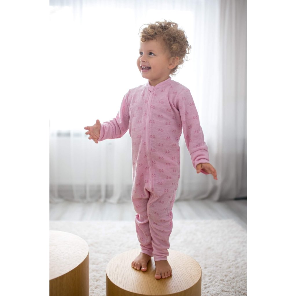 Kinder Overall/Schlafanzug aus 100% Merinowolle Jaquard SAFA - Rosa