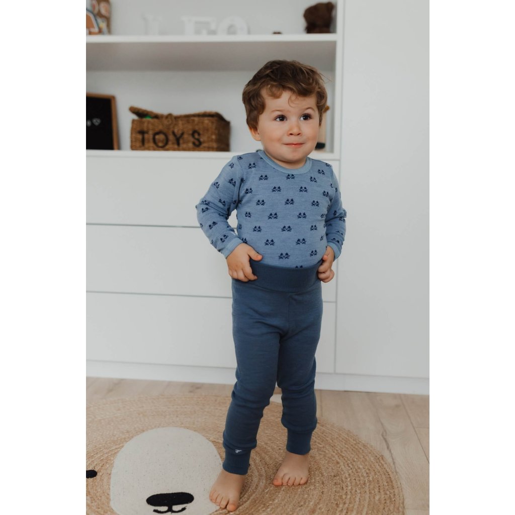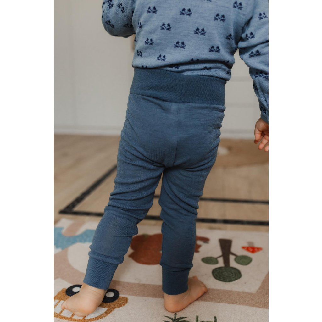 Kinder Wachsende Leggings aus 100 % Merinowolle Jaquard SAFA - blau