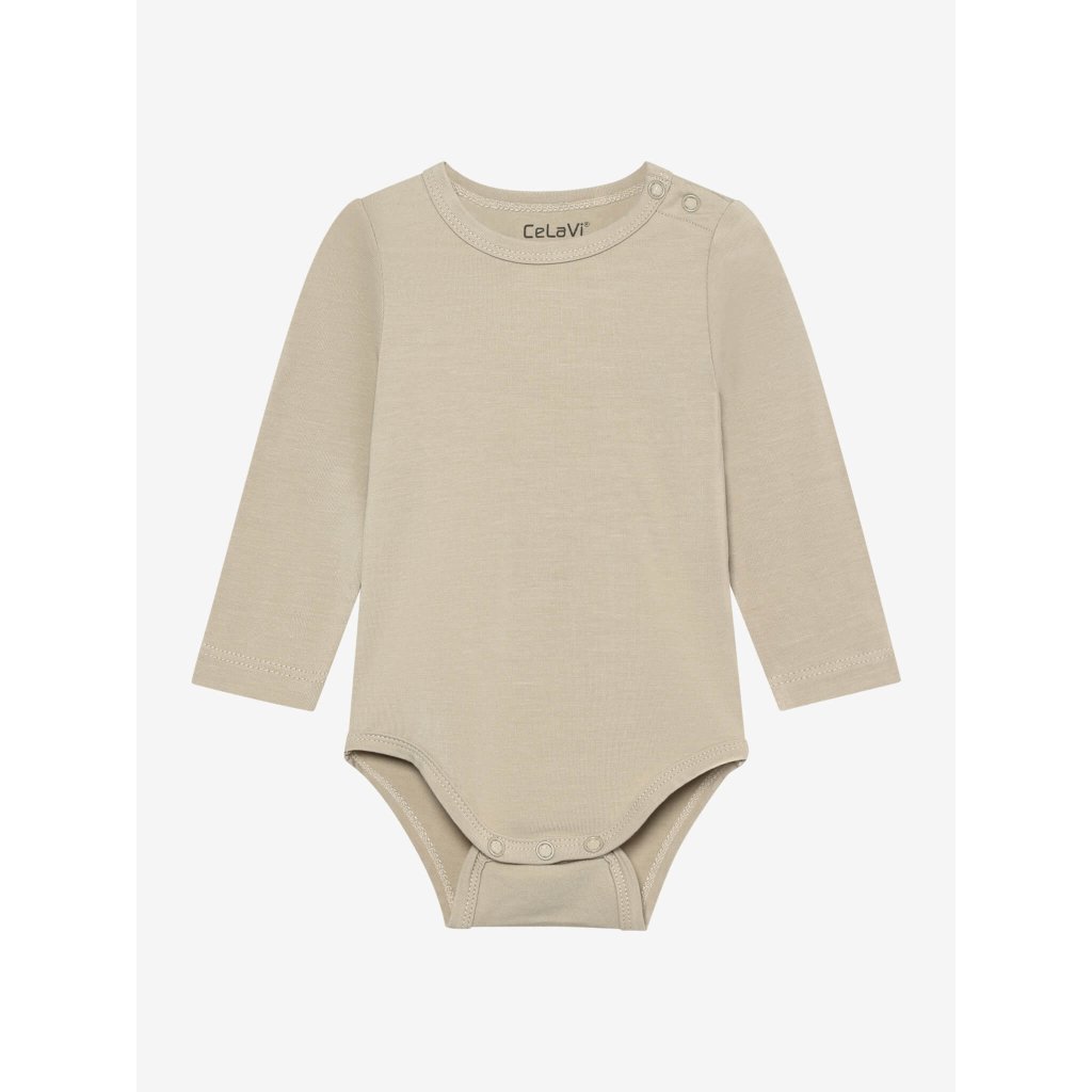 Langarm-Baby-Body aus Bambus und Baumwolle CeLaVi - Plaza Taupe