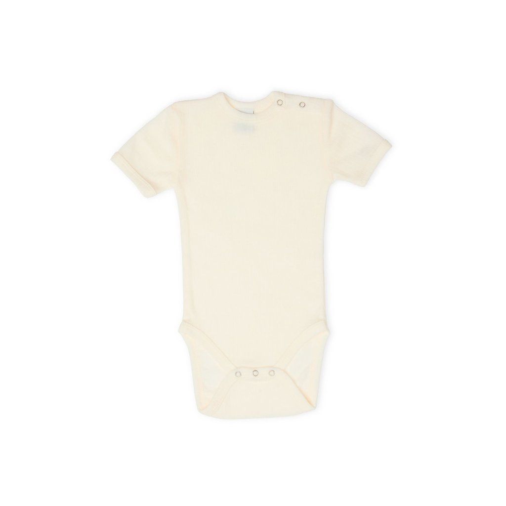 Merino-Body für Kinder Kurzarm Smallstuff - beige white melange