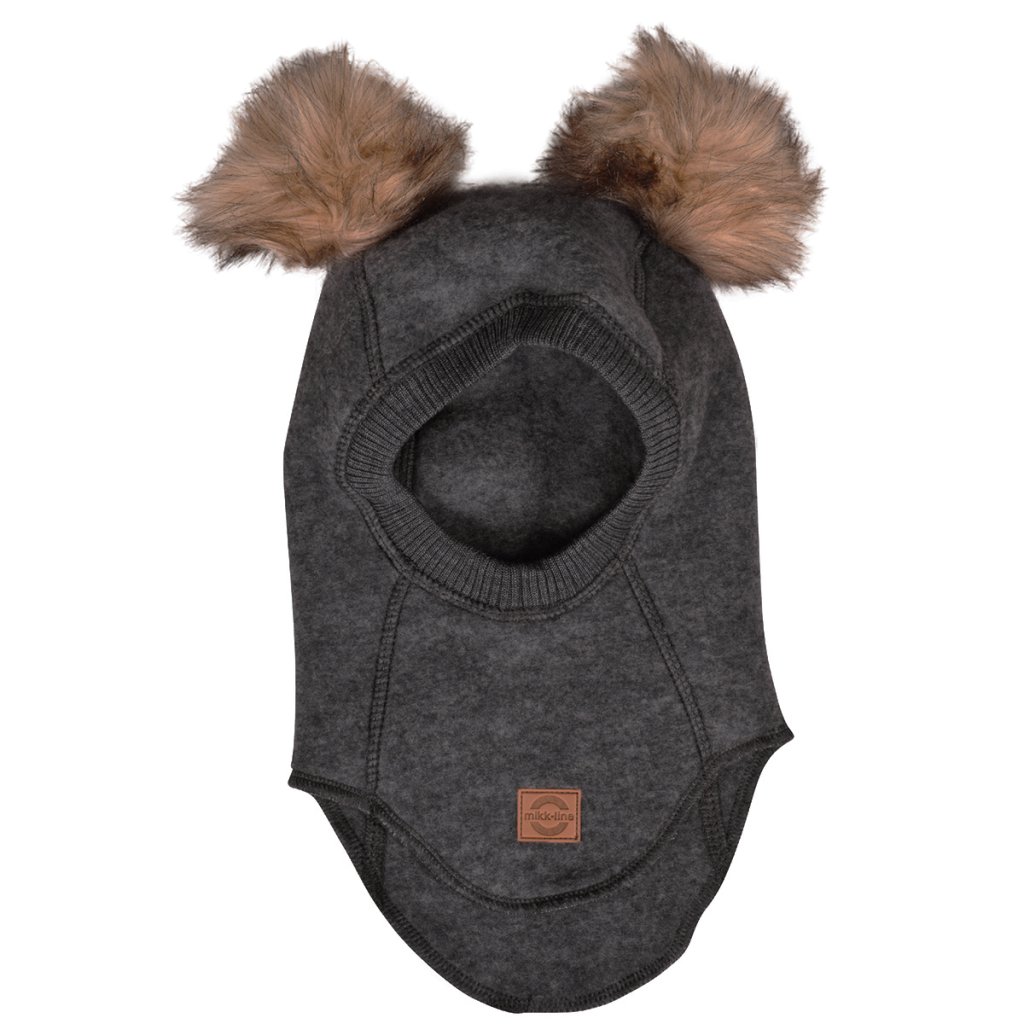 Merino Kinder Sturmhaube mit Pompons dunkelgrau Anthrazit Melange Mikk Line
