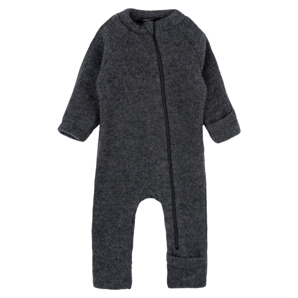 Merino Overall mit Reißverschluss ohne Kapuze zum Umschlagen grau Anthracite Melange Mikk-Line NOOS