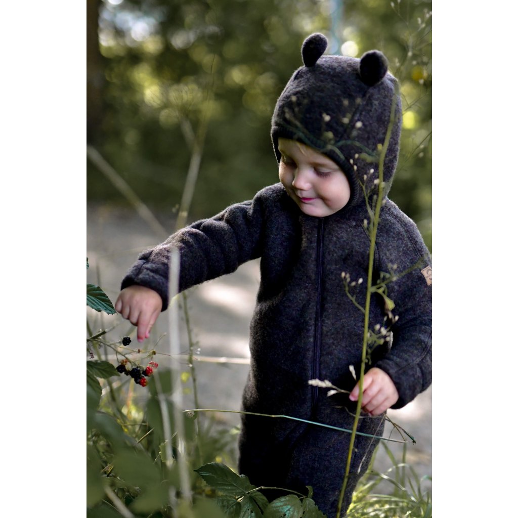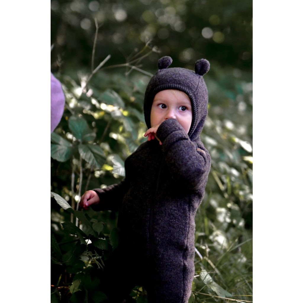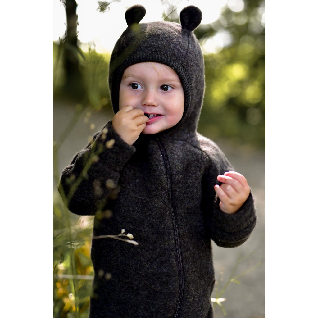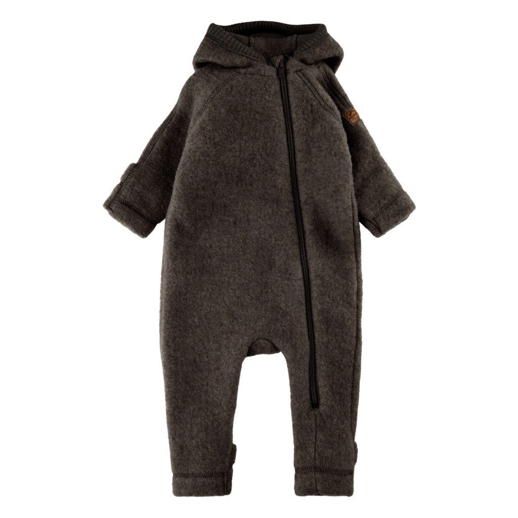Merino Overall mit Reißverschluss und Öhrchen für Kinder Mikk-Line - braun Dark Brown Melange
