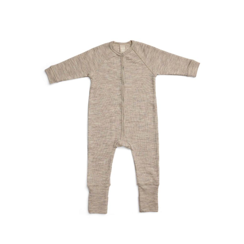 Mitwachsender Merino Kinder-Schlafanzug (Overall) Smallstuff - Farbe braun light nature melange
