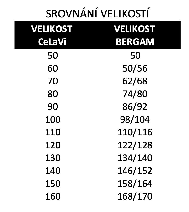 Zur leichteren Übersicht haben wir einen Größenvergleich der Marken CeLaVi und Bergam vorbereitet.