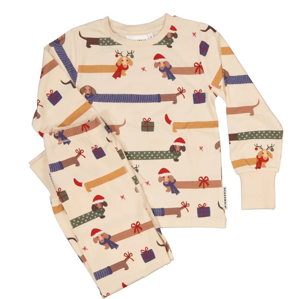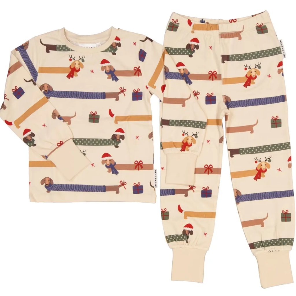 Zweiteiliger mitwachsender Bambus-Schlafanzug Weihnachtsmann-Hunde Geggamoja